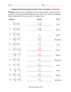 Adding and Subtracting Mixed Numbers Color by Number-4