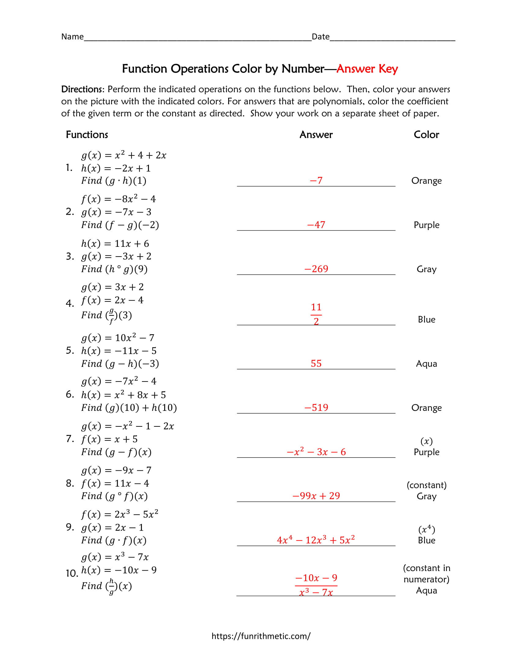 Function Operations Color by Number-4